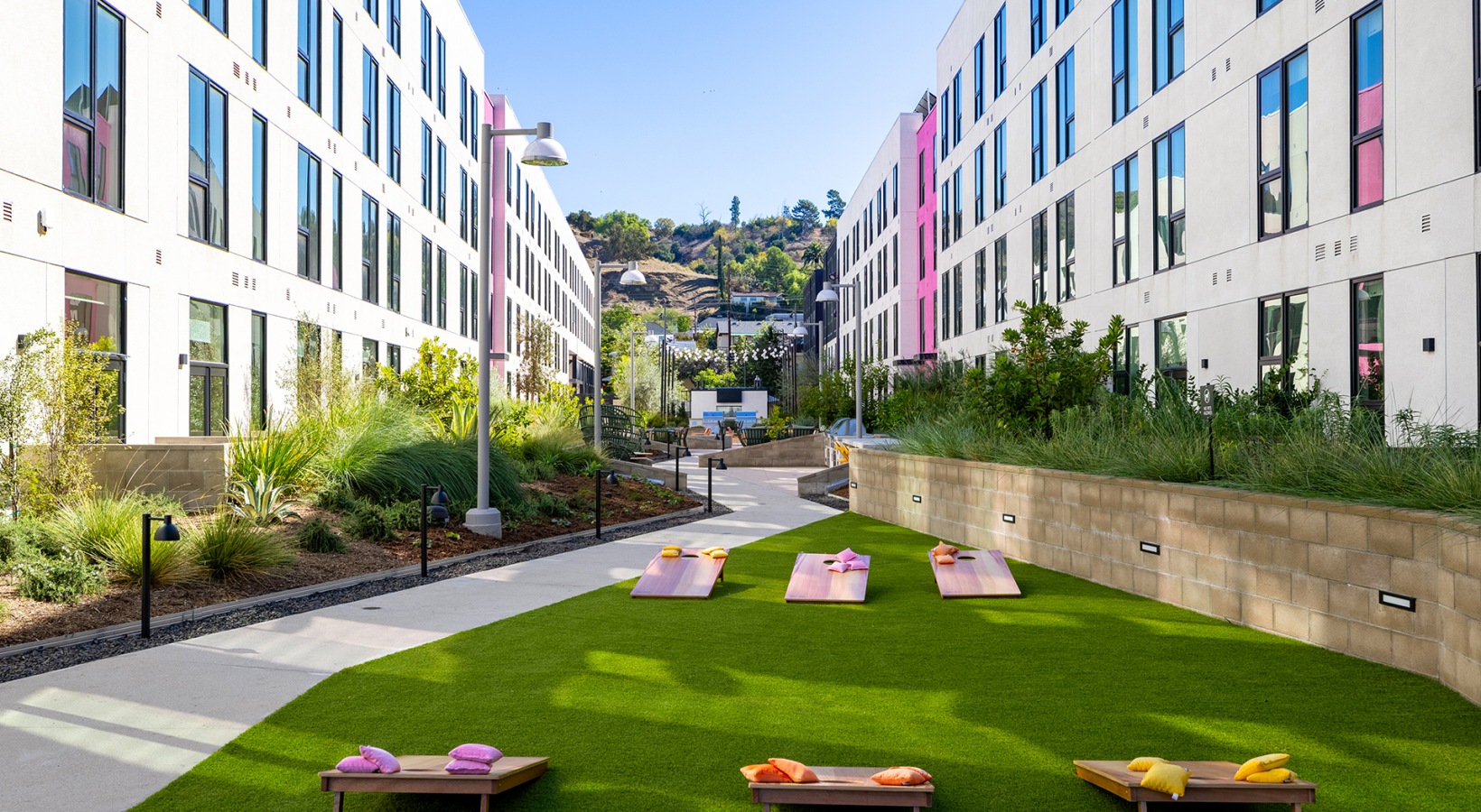 Building by building, lounging is an art form. Courtyard by courtyard, gatherings go all day. Rooftop to rooftop, sunsets are toasted with iconic L.A. landmarks presiding. Peruse the paseo, sneak a peek, and stop to smell the lavender—or was that jasmine?